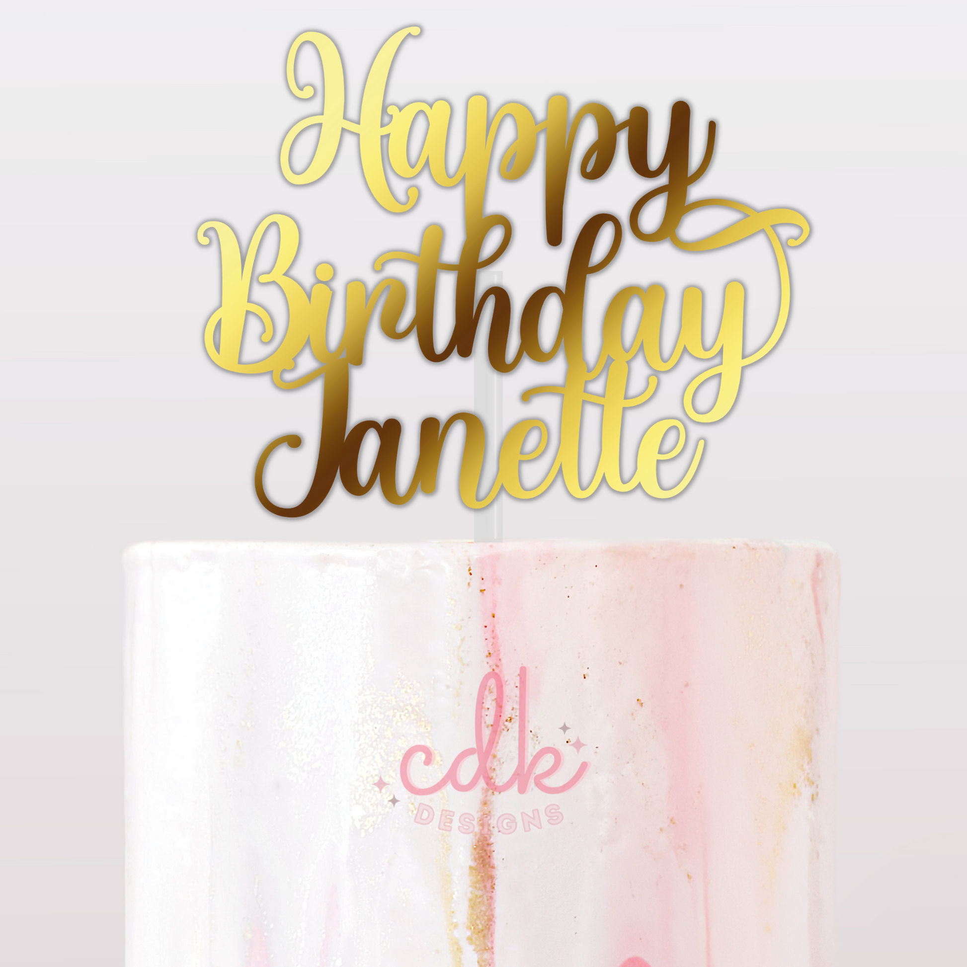A Personalised Happy Birthday Cake Topper is a great way to add a special touch to your celebration cake. It can be customised with your own message making it unique and special.